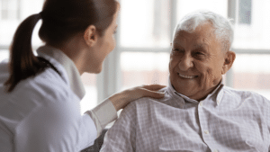 Manter uma comunicação aberta e oferecer encorajamento pode ajudar a melhorar o estado de ânimo do idoso, o que pode ser benéfico para a cicatrização.